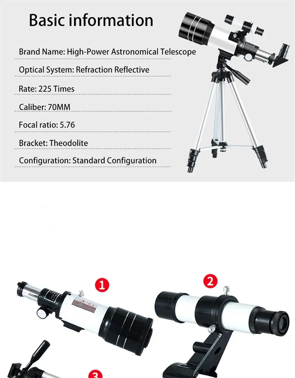 Astronomical Monocular Telescope Beginner HD High Power Night Vision Deep Space View Spyglass for Moon Sun Star Astronomic