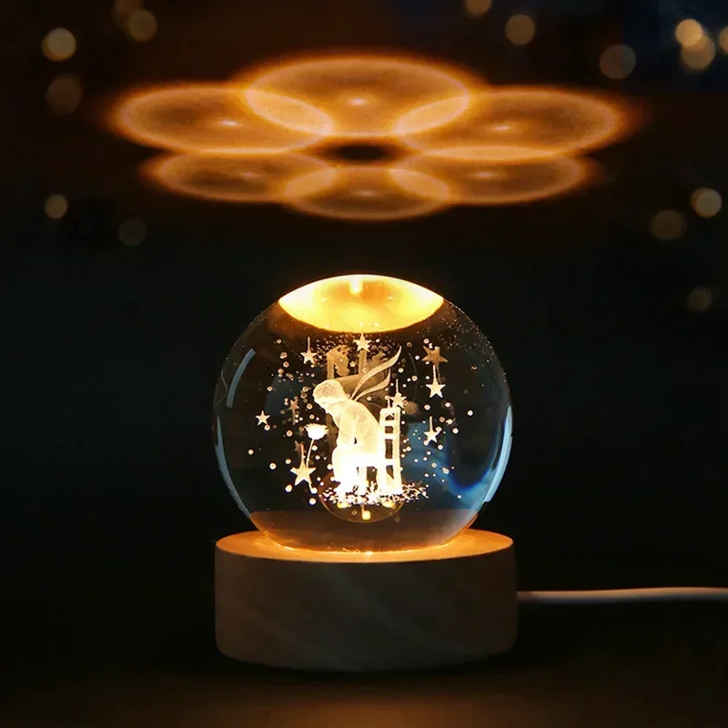 3D Crystal Ball Glass Ball Planet Earth Wooden Base Solar System Galaxy Astronomy Birthday Gift Home Desktop Decoration6cm