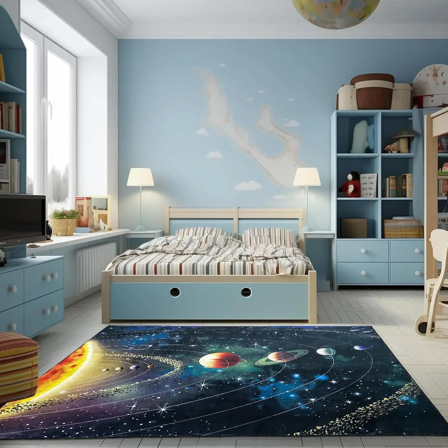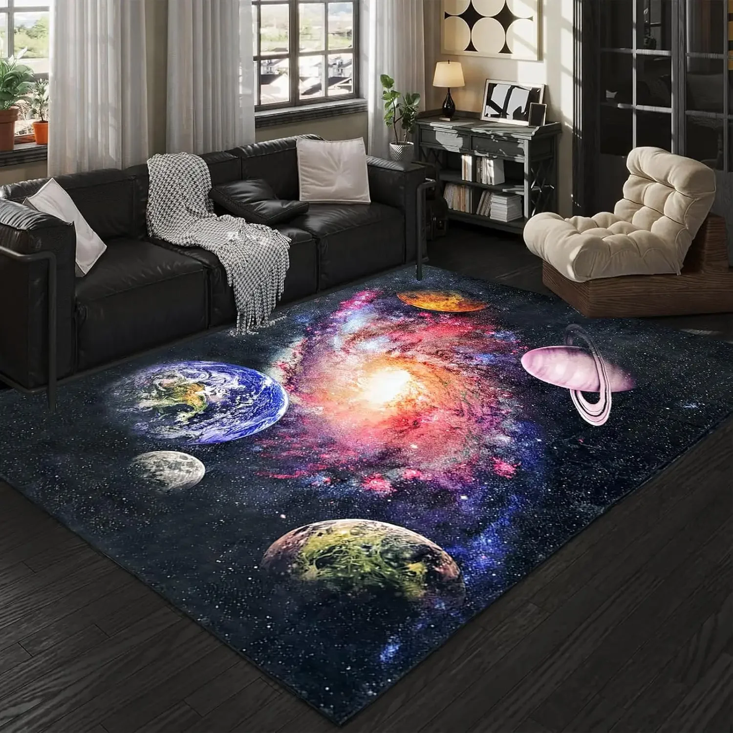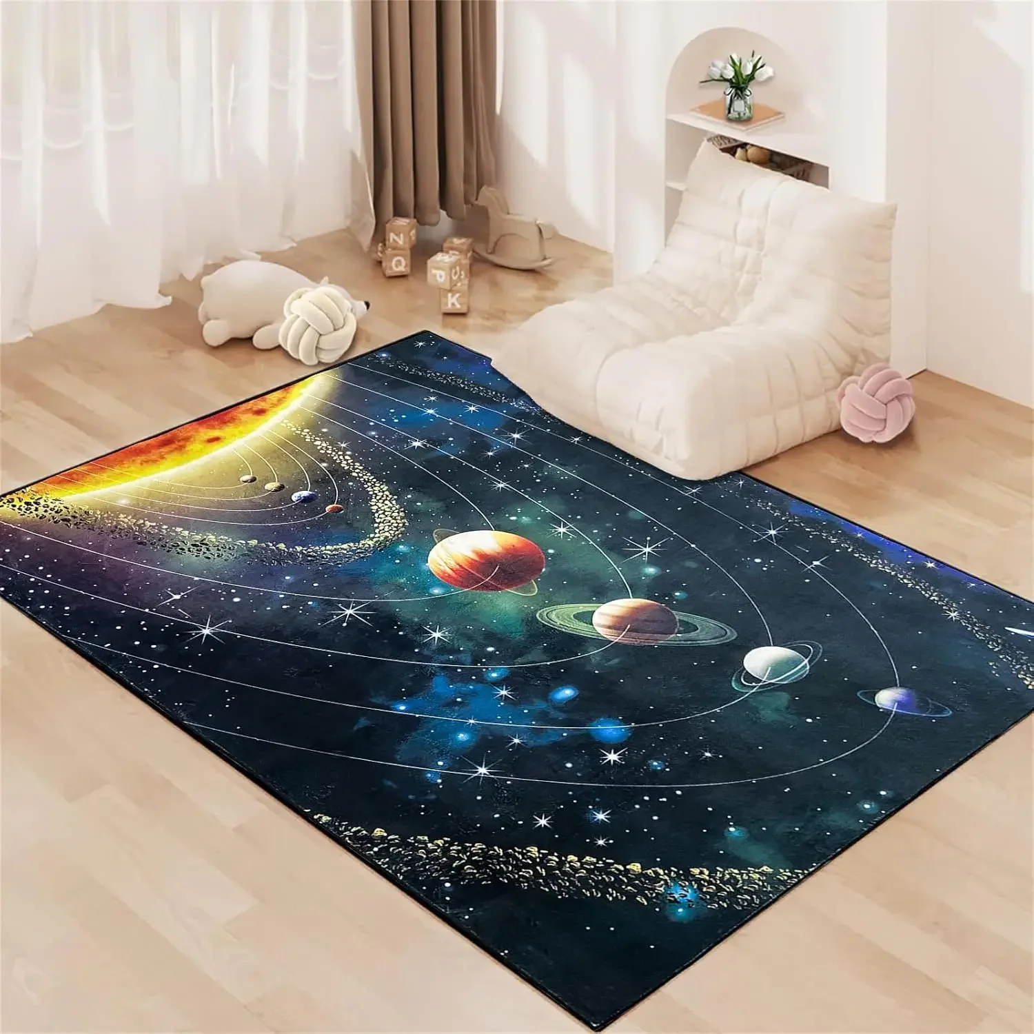 3D Planet Universe Crystal Velvet Carpet Children's Room Play Mat Home Living Room Bedroom Decorative Floor Mat