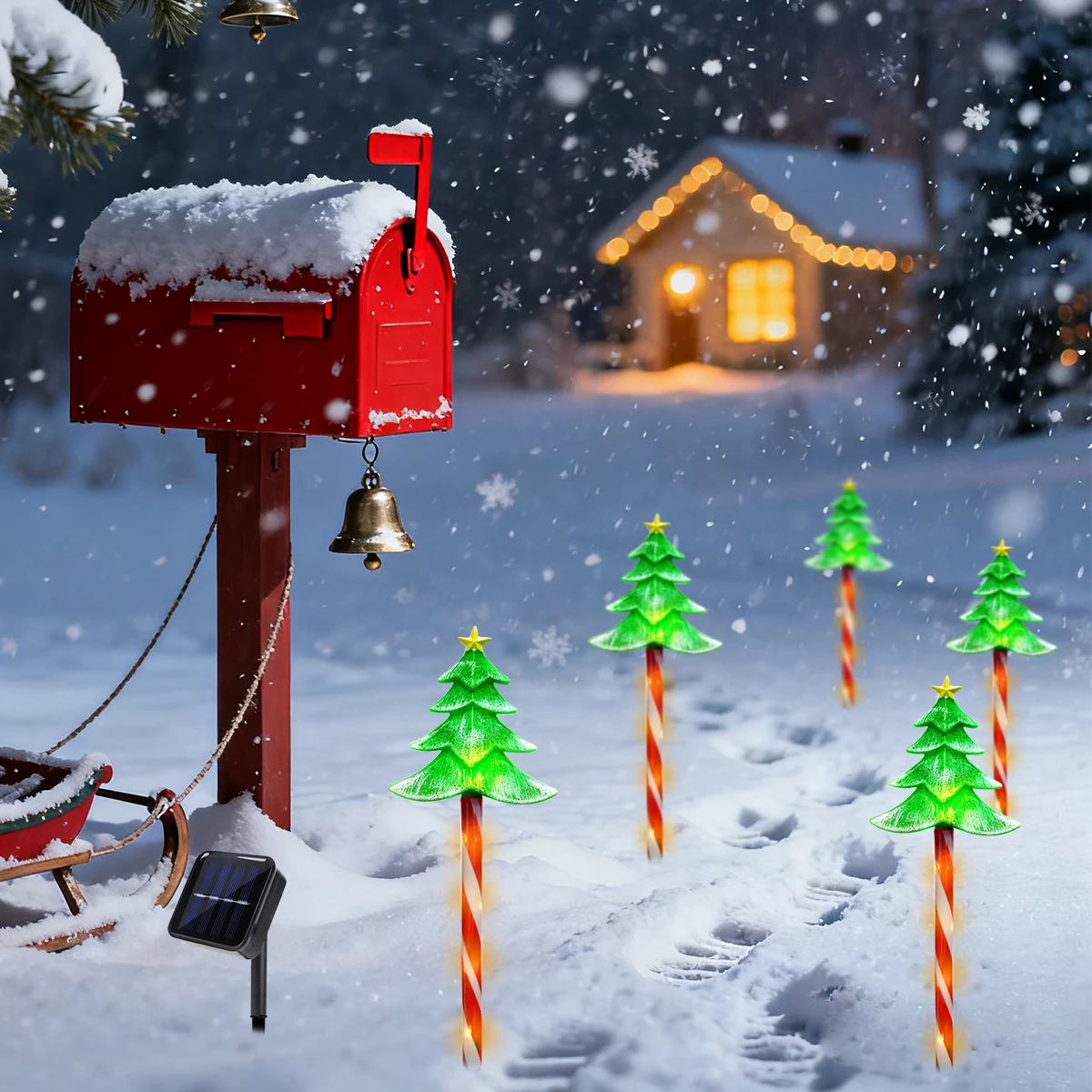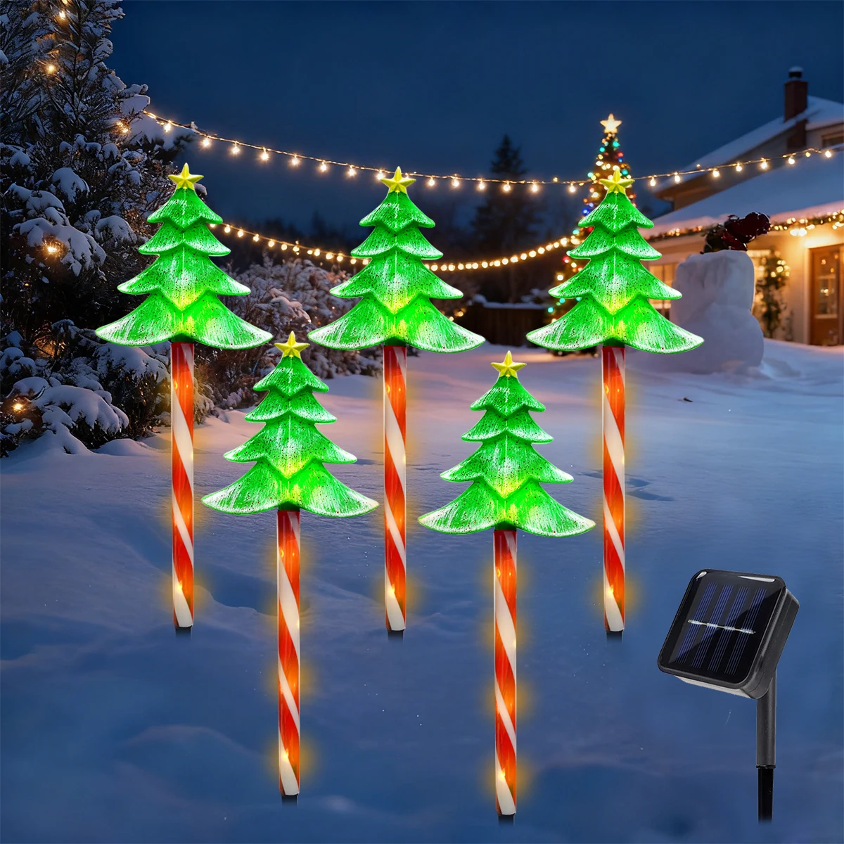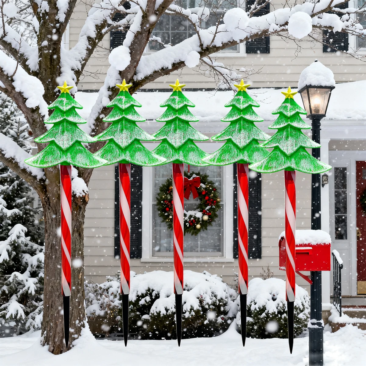 5pcs/set LED Xmas Tree Decorative Stake Light Solar Powered Outdoor Waterproof Lamp For Garden Patio Yard Lawn Christmas Decor