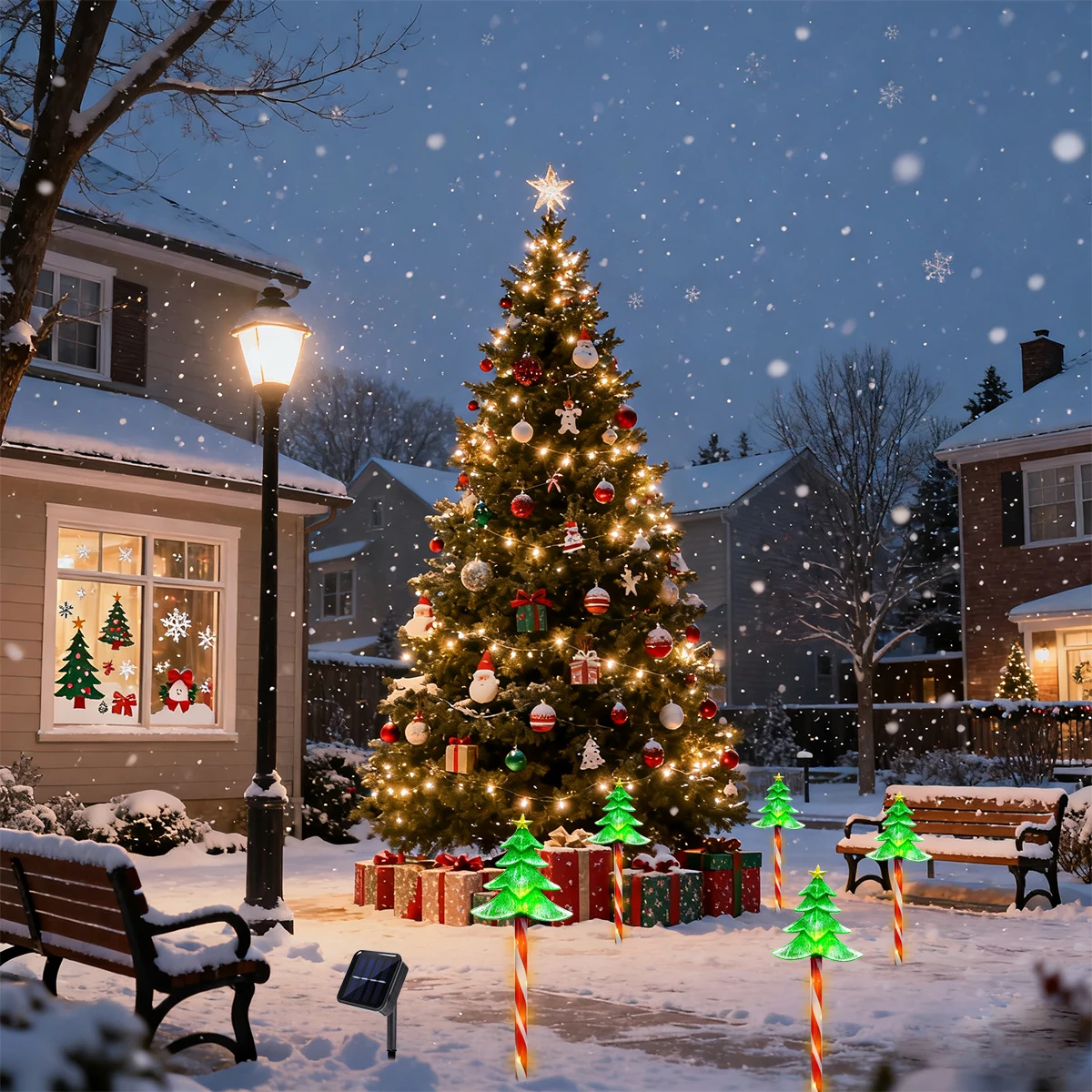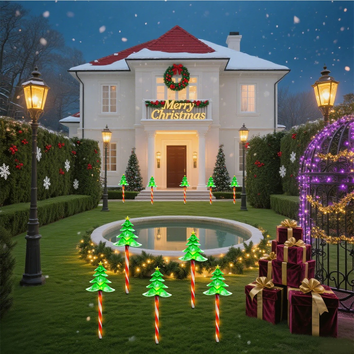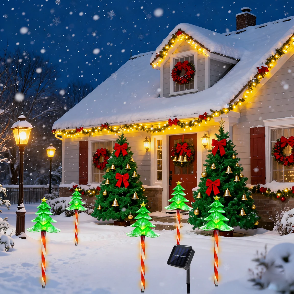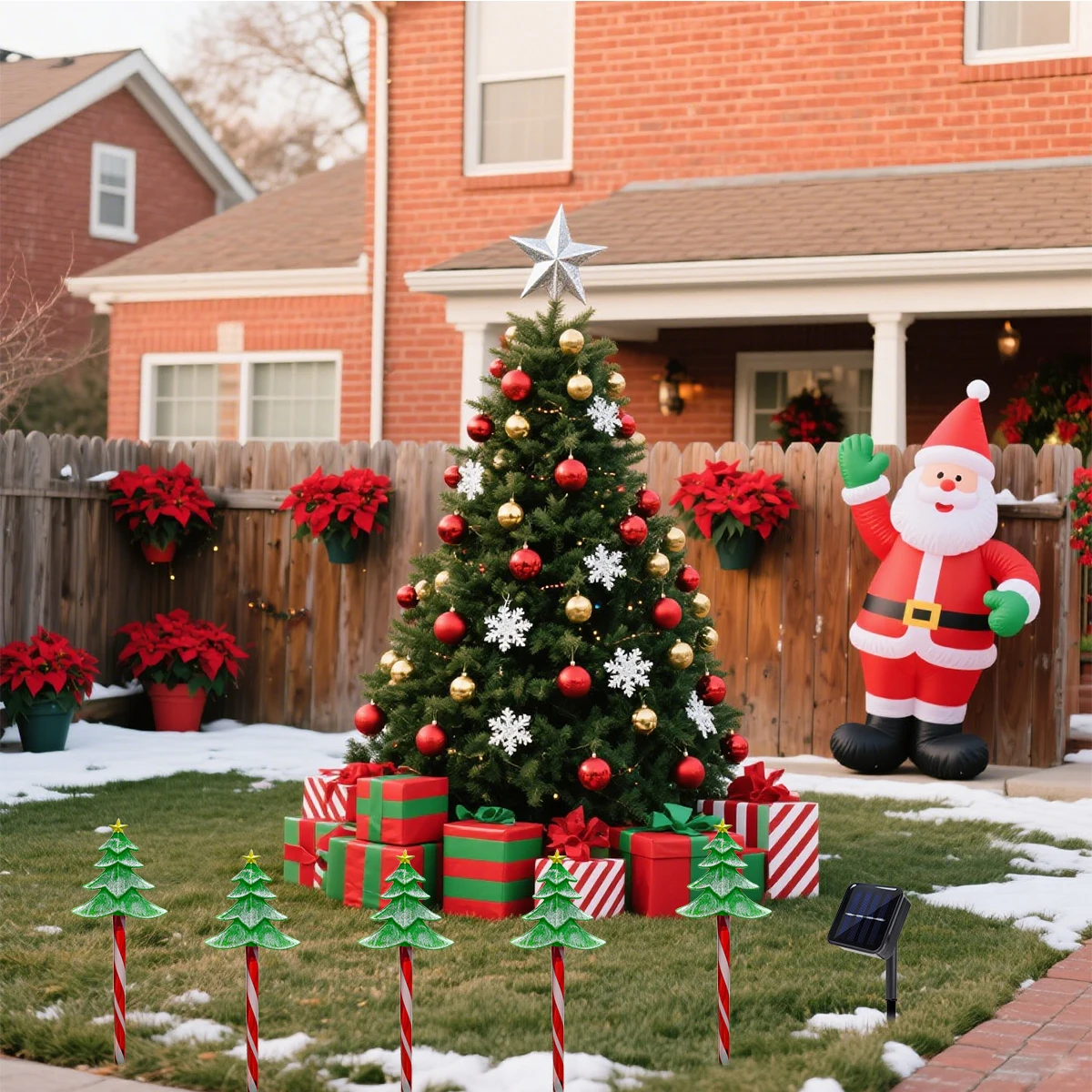 5pcs/set LED Xmas Tree Decorative Stake Light Solar Powered Outdoor Waterproof Lamp For Garden Patio Yard Lawn Christmas Decor