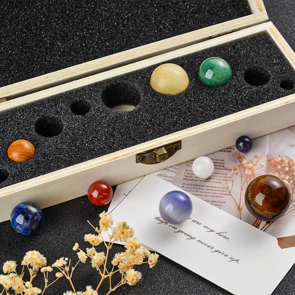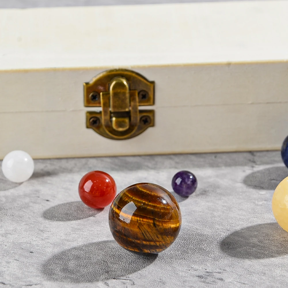 Chakra Healing Crystal Sphere Ball,9 Planets Solar System Desk Decor,Gemstones Sphere Galaxy Universe Model Home Office Desk