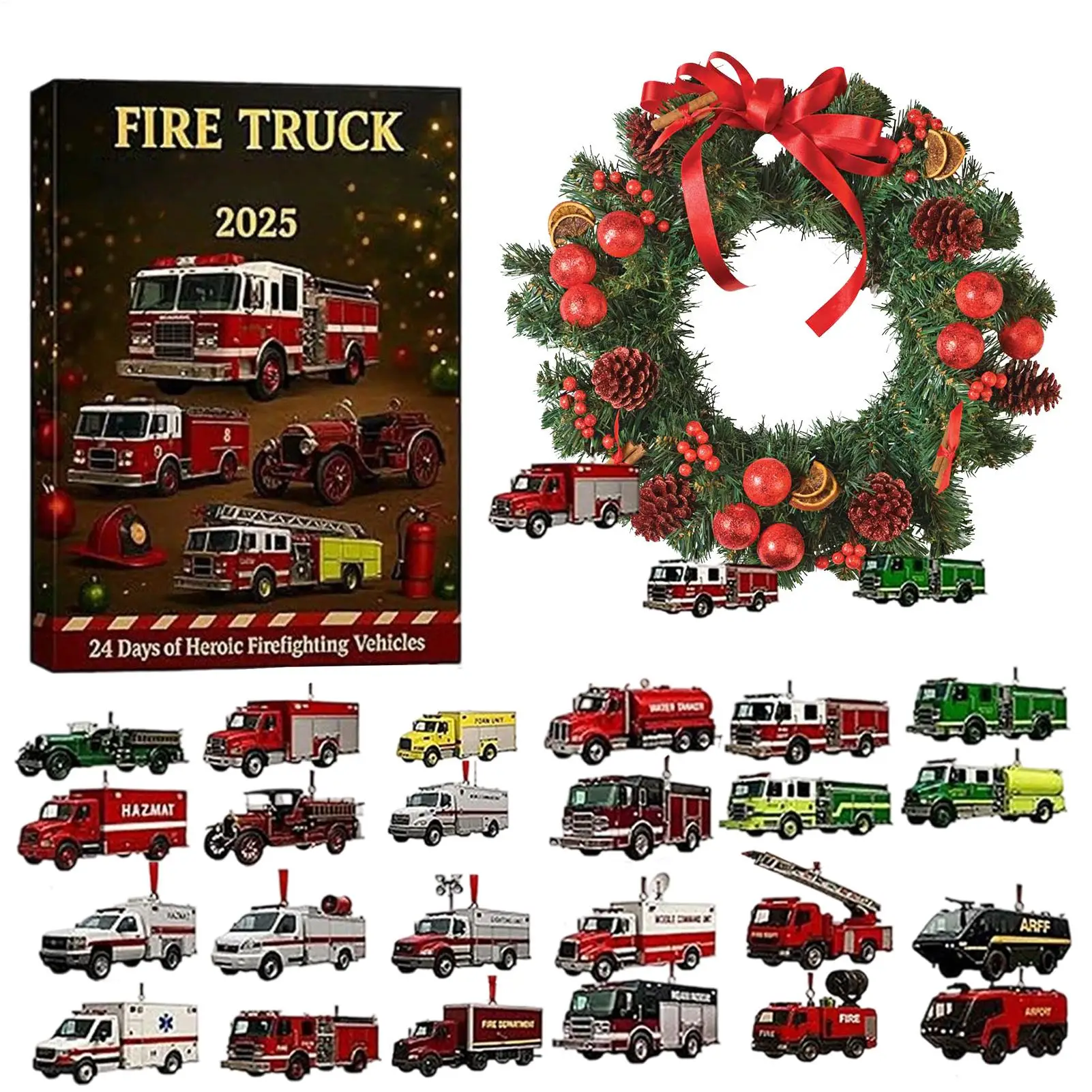 Christmas 2D Acrylic Fire Truck Advent Calendar 24 Days Countdown Calendar Pendant Xmas Tree Decor Party Favors For Kids