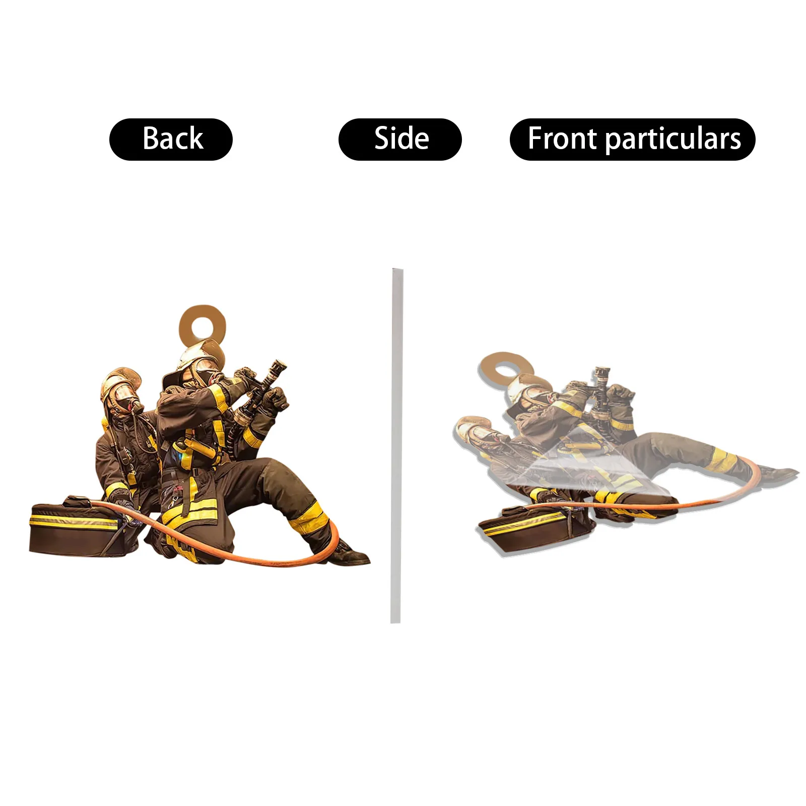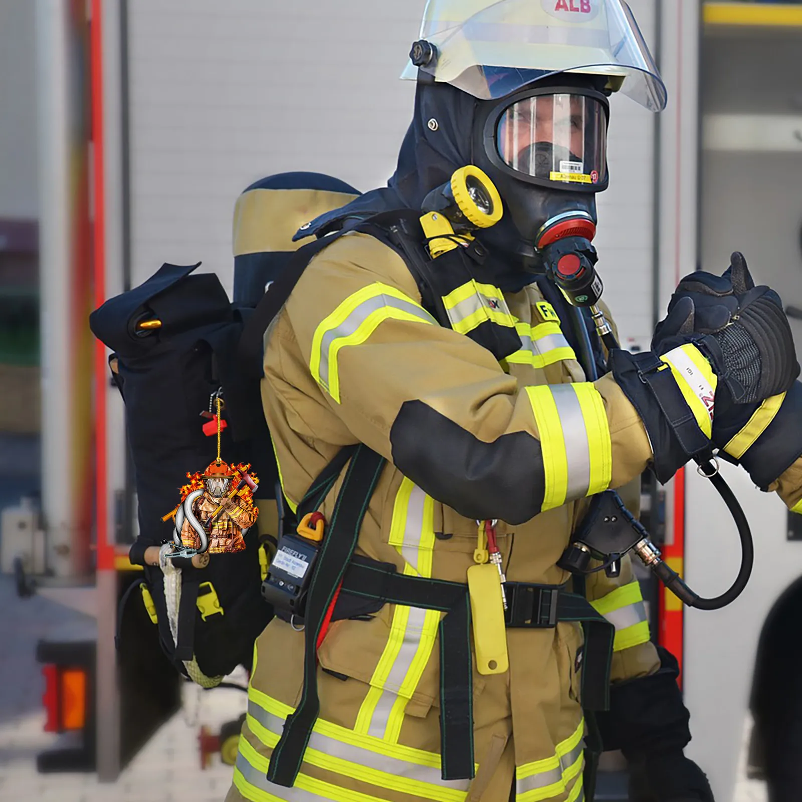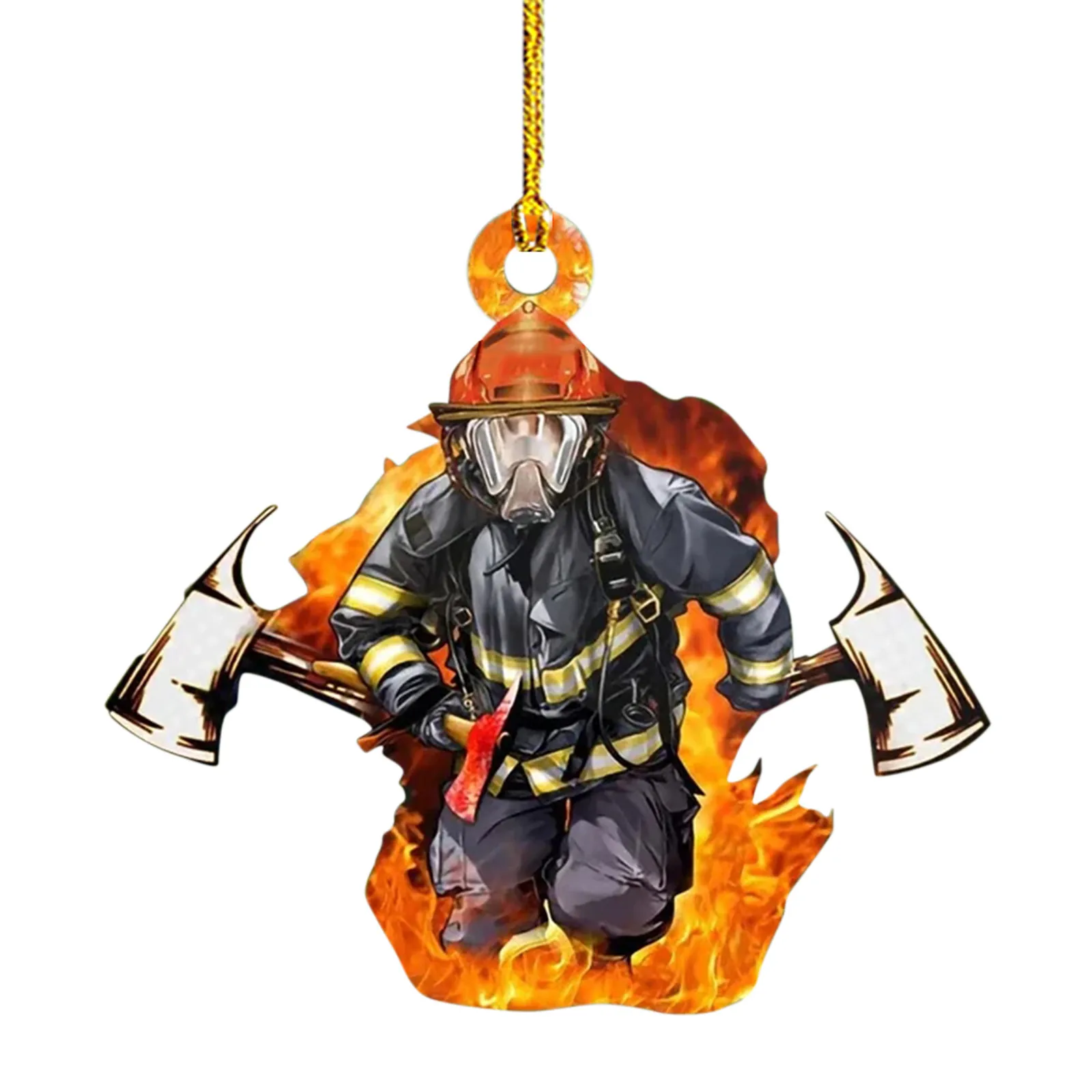 Creative Fireman Car Pendant Christmas Tree Decor Wood Firefighter Uniform Hanging Ornament Gift