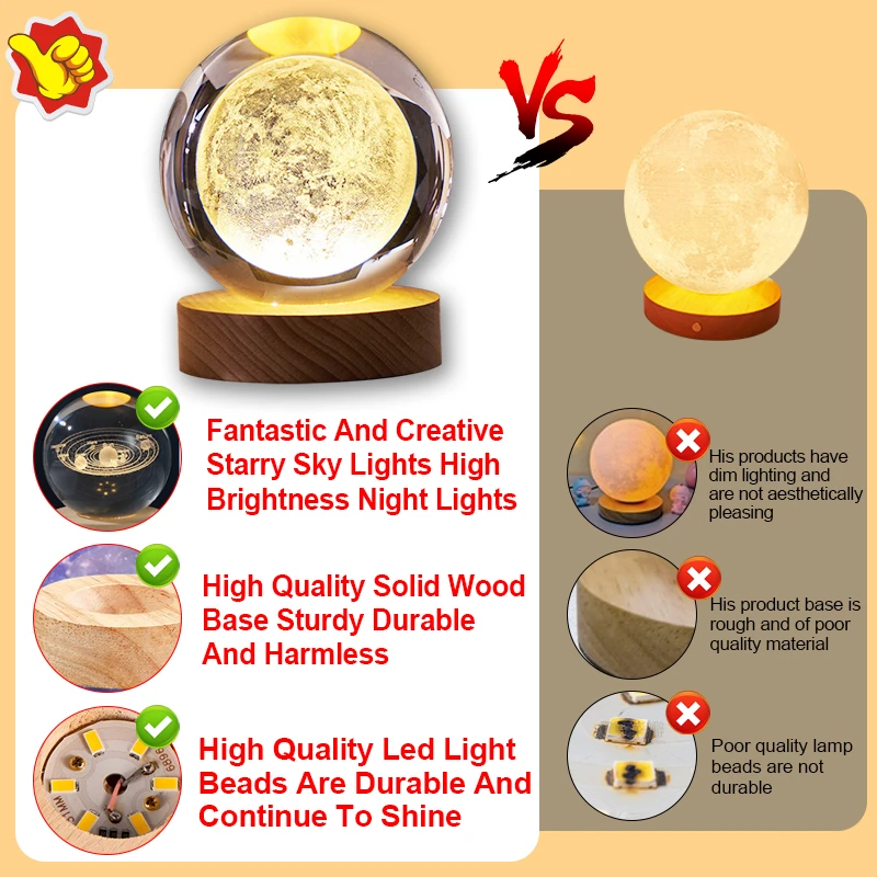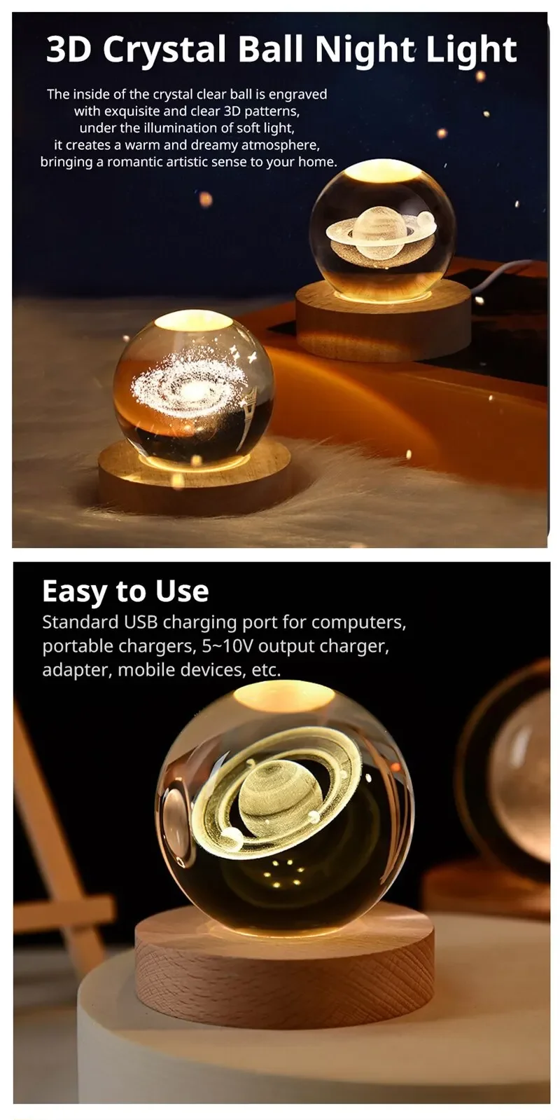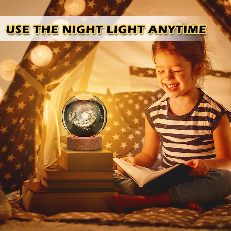 • Creative Design :The LED Night Light features a unique crystal ball design, resembling a galaxy in the universe. It's an creative gift for children and adults alike, adding a touch of whimsy to any room.