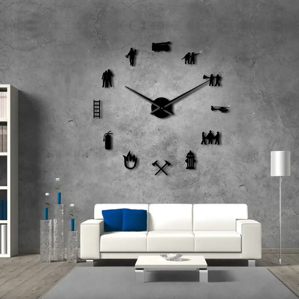 Firefighter Love DIY Giant Wall Clock Fire Department Office Big Clock Watch Firefighting Rescue Volunteer Axe Hydrant Equipment