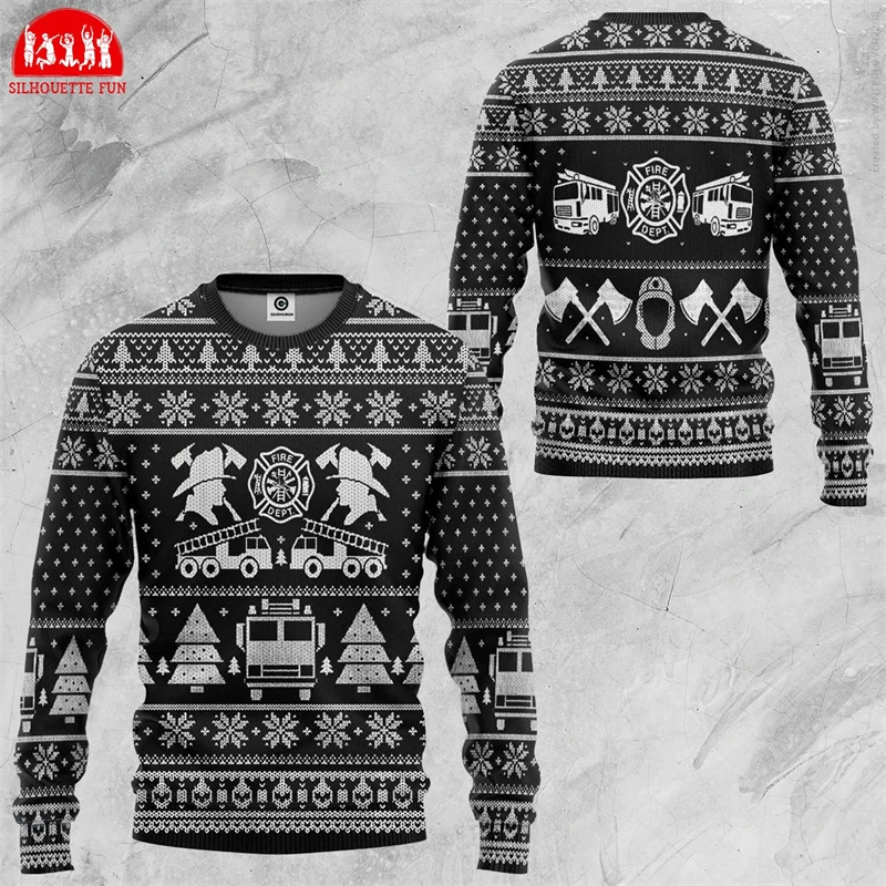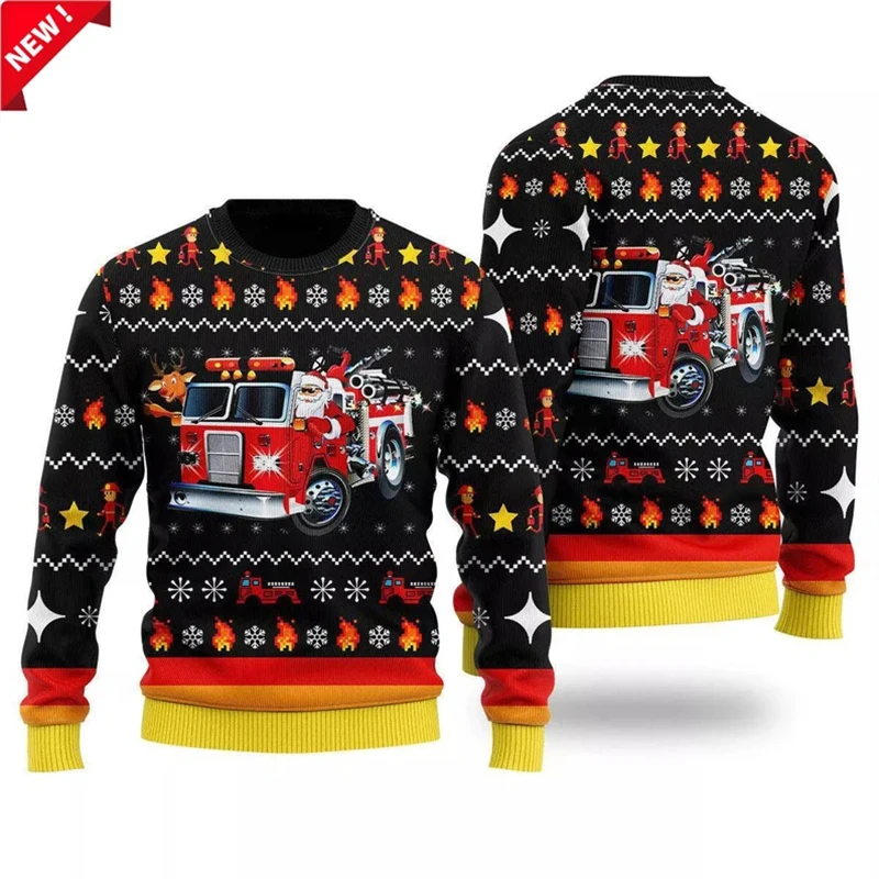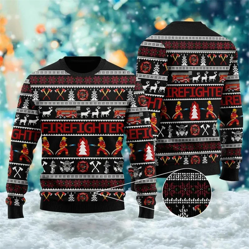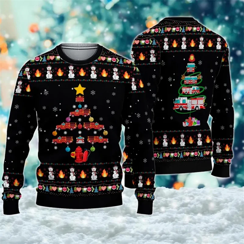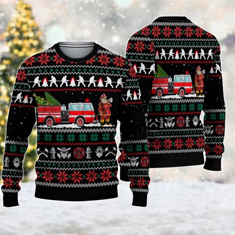 Firefighter Fire truck Ugly Christmas Sweater Fashion Trend Holiday Xmas 3D Printed Sweatshirt For Men Loose Streetwear Pullover