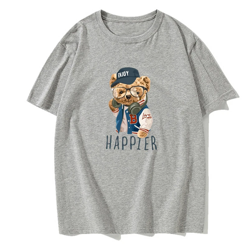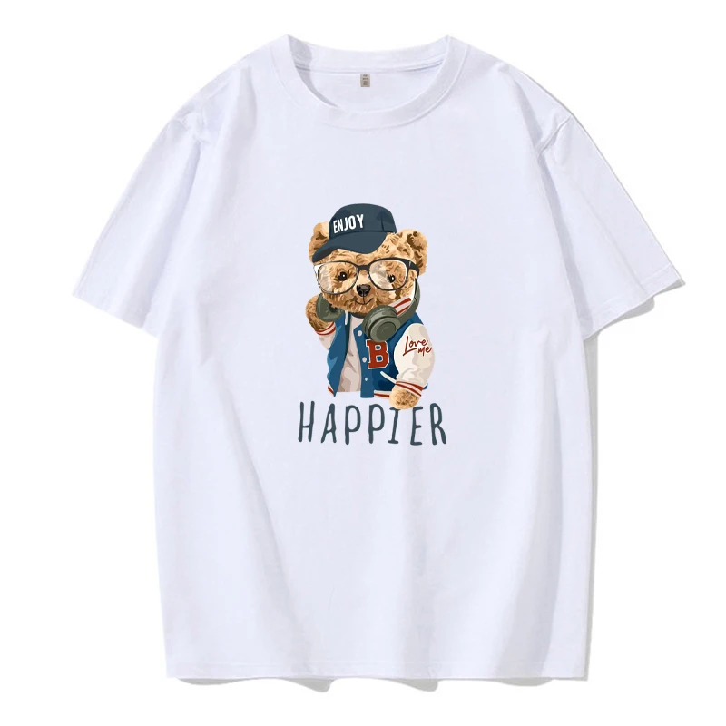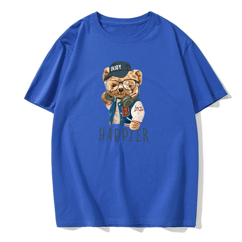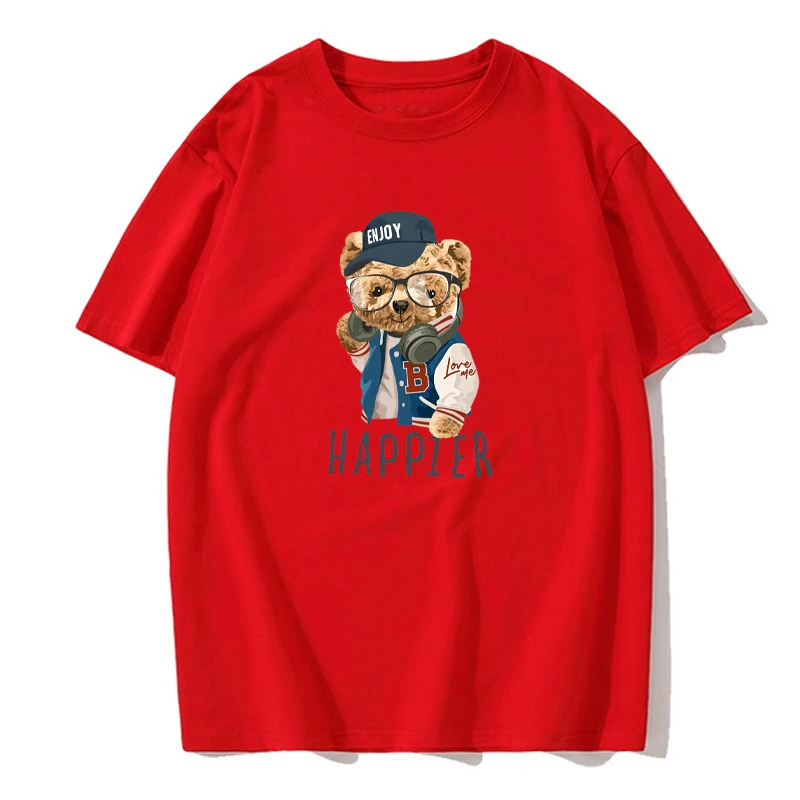 Firefighter Teddy Bear Cool Letter Pattern T-shirt Creative Unisex Street Clothing Top Summer Men's Clothing Fashion T-shirt