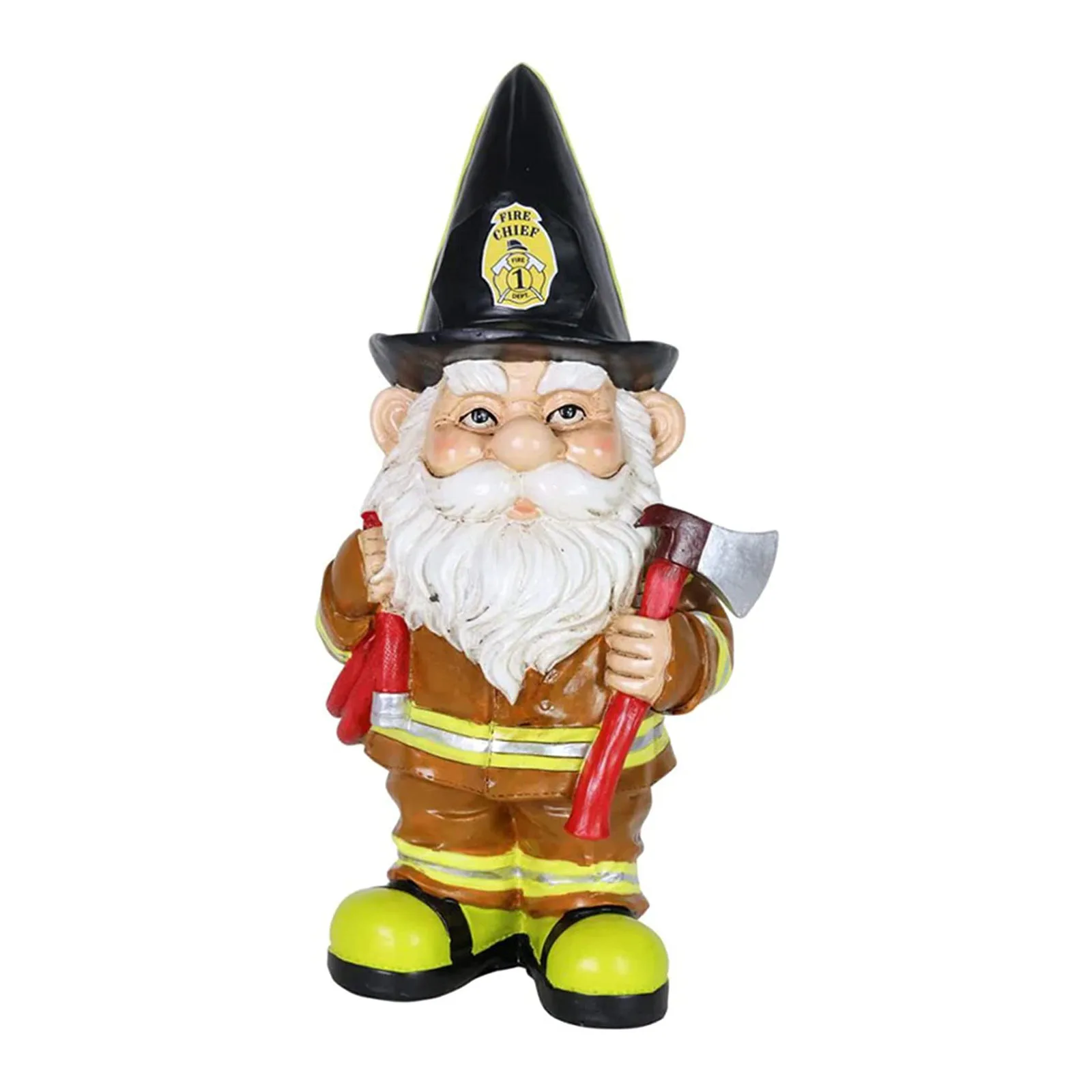 Fireman Gnome Statue Whimsical Garden Decoration Firefighter Dwarf Garden Like A Courtyard Lawn Porch Villain Resin Realistic