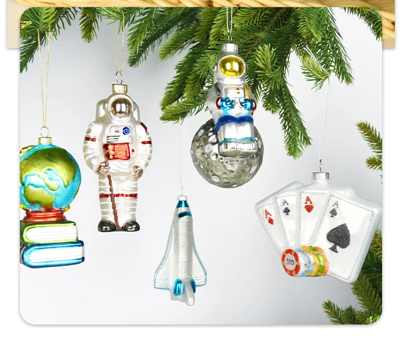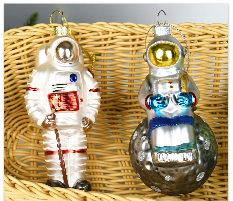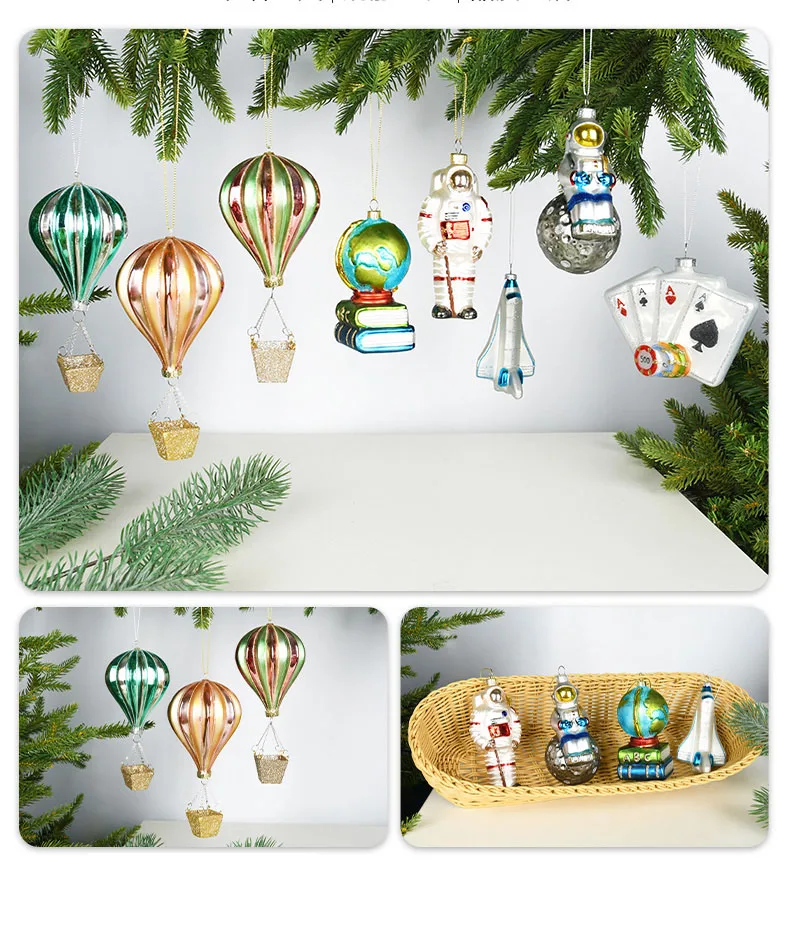 Glass Material Christmas Gifts Xmas Tree Hanging Decoration Astronaut Hot Air Balloon Globe Pattern Design Home Ornaments Pendan