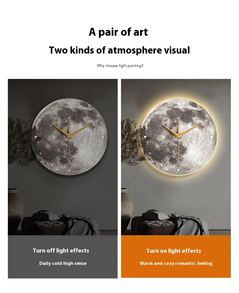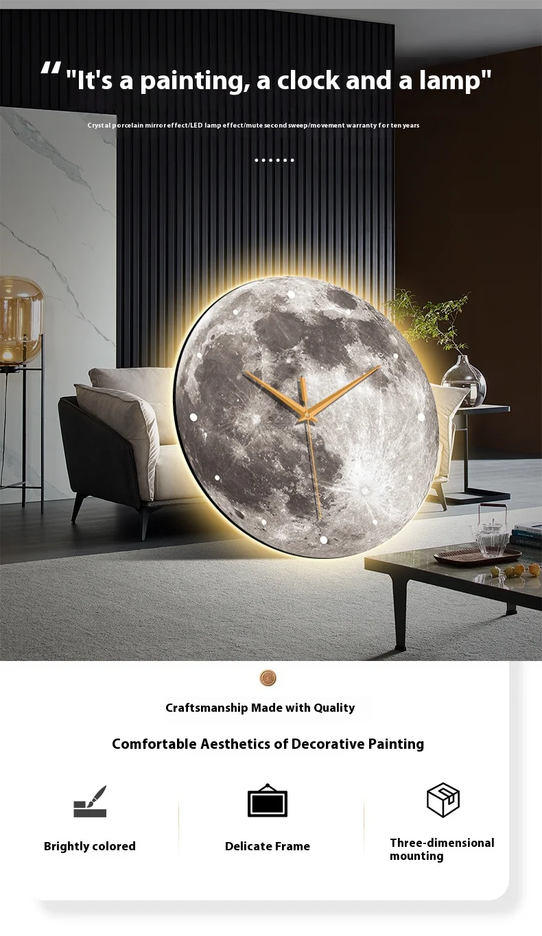 Large Size Planet surface Artwork Wall Clock, Luxurious Muted Quartz Clock for Home Decor,living Room,bed Room Décor