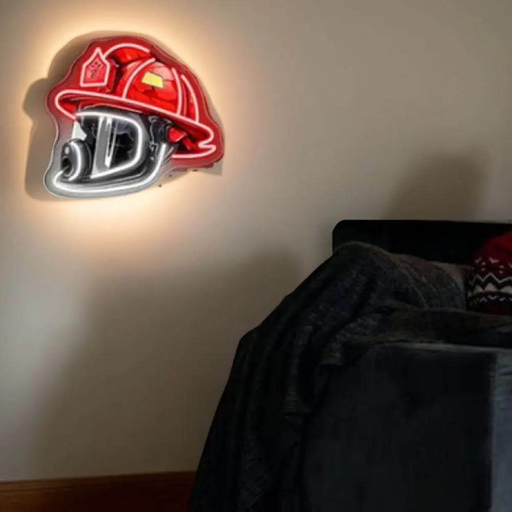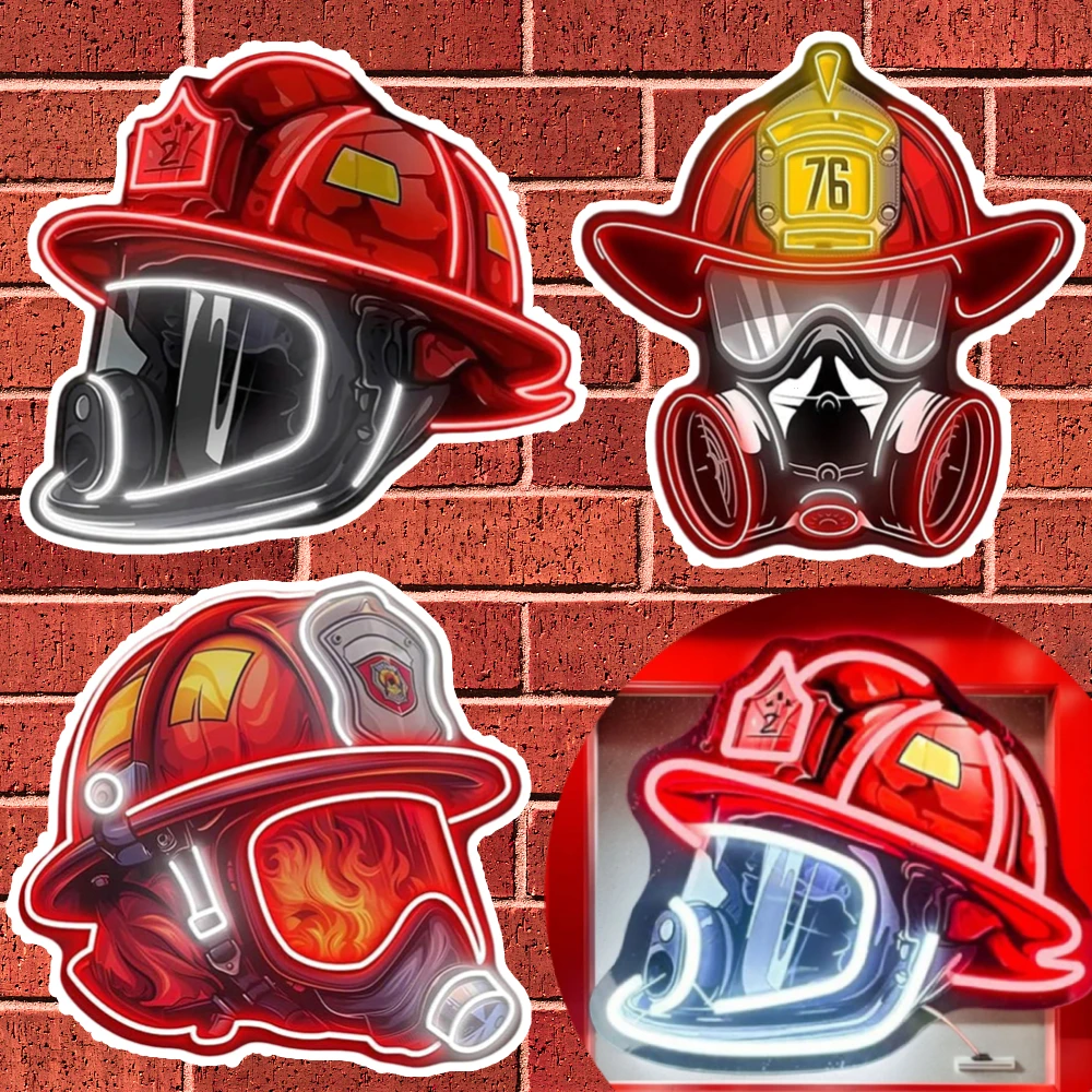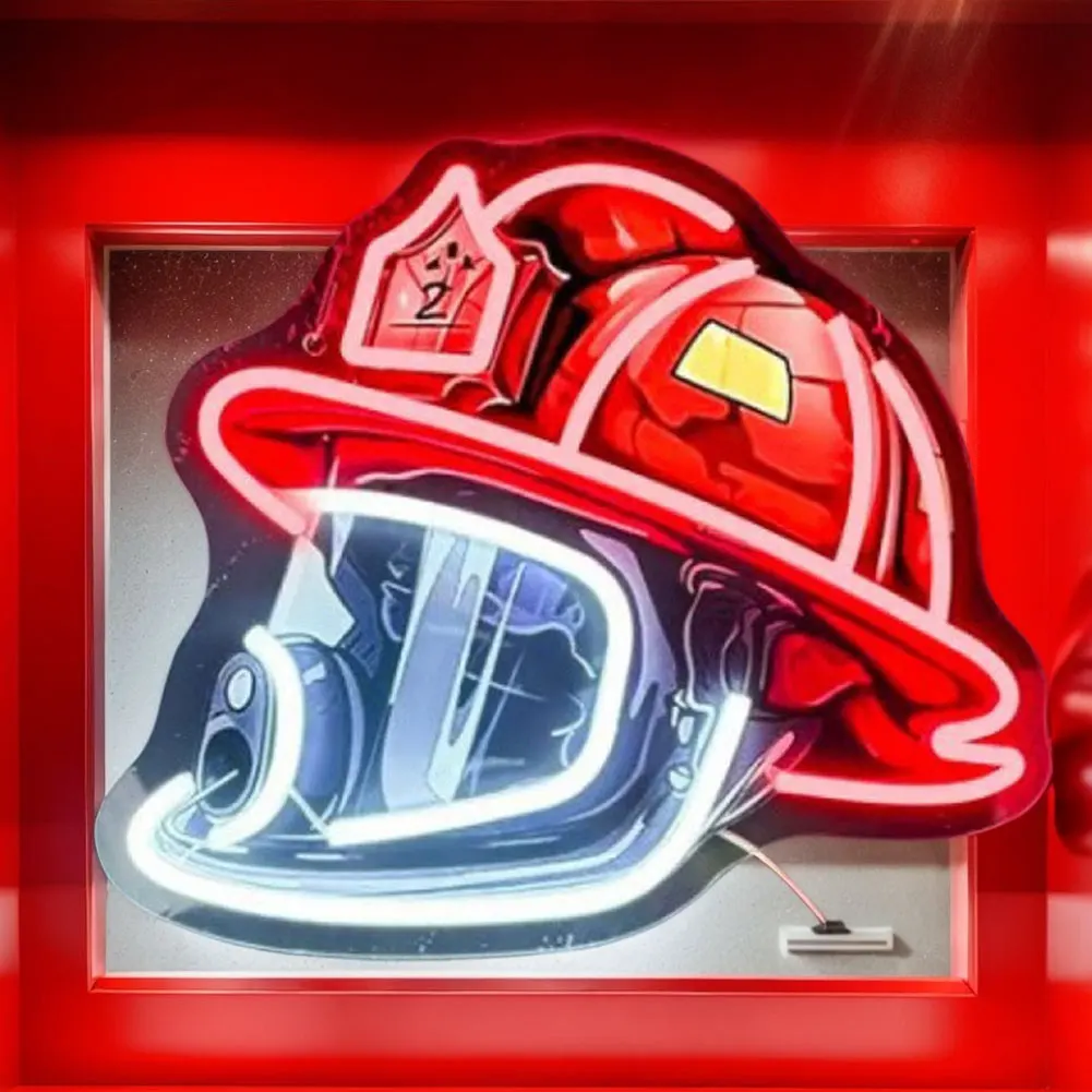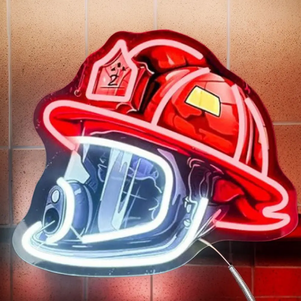 New Firefighter Helmet Neon Sign Acrylic Board Firefighting Helmet LED Light USB Powered Wall Neon Light Bar Party Wall Decor