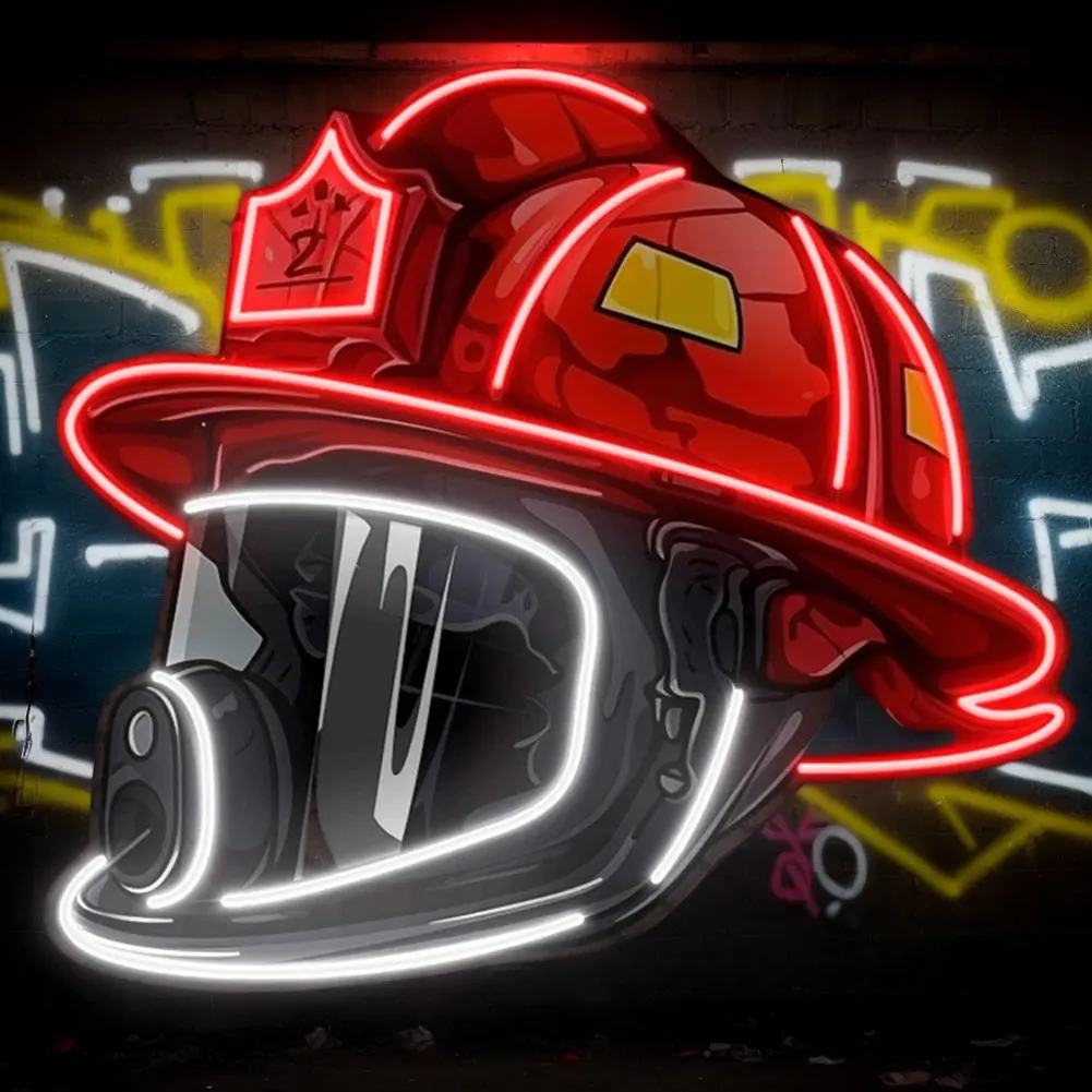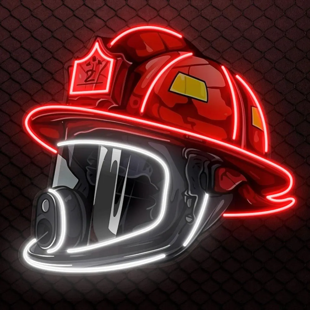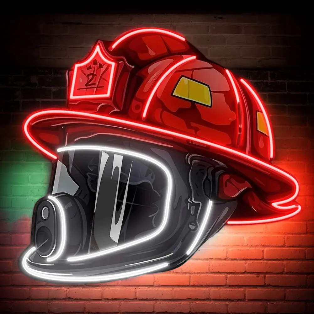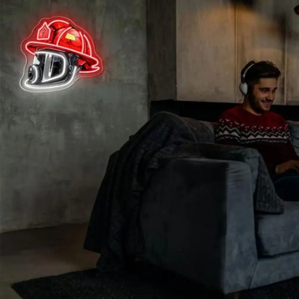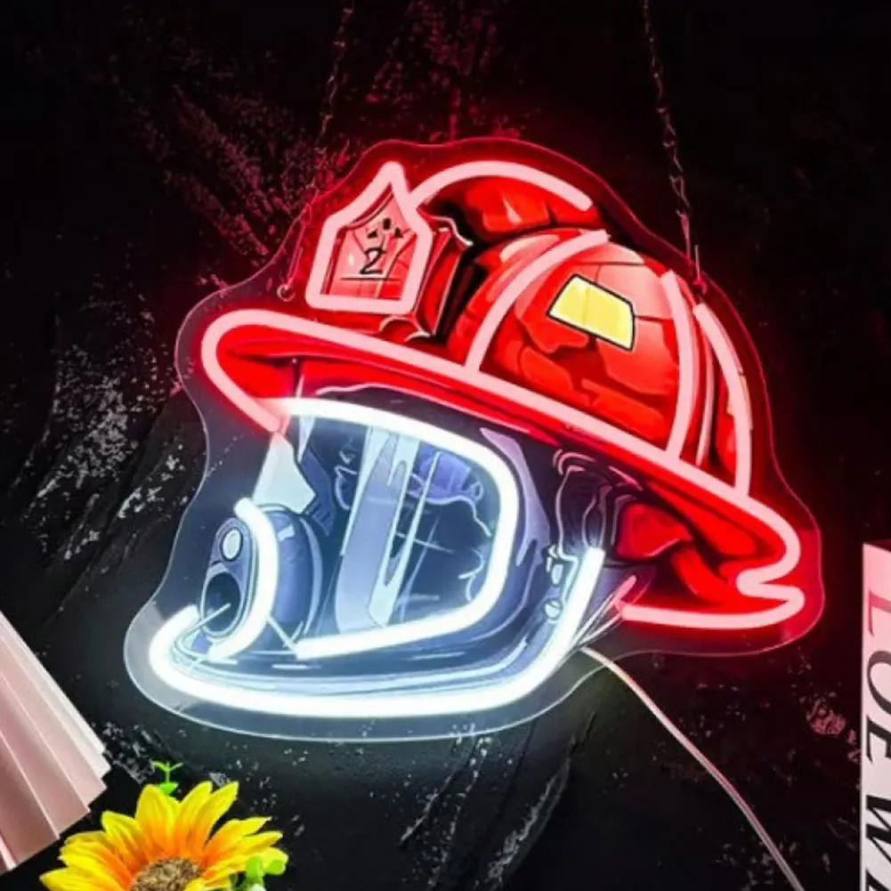 New Firefighter Helmet Neon Sign Acrylic Board Firefighting Helmet LED Light USB Powered Wall Neon Light Bar Party Wall Decor